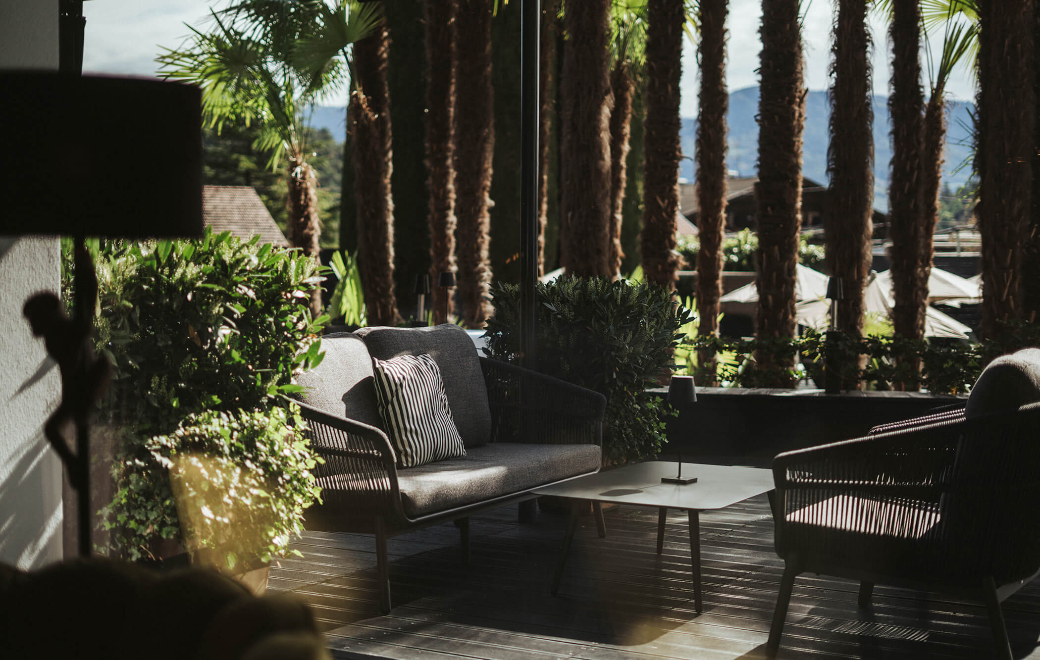 Now, we just need the sand. But who needs a beach when you can have the mountains? Our garden hotel in South Tyrol, with a palm garden and near Merano, is the perfect place to relax and enjoy the view on the horizon.