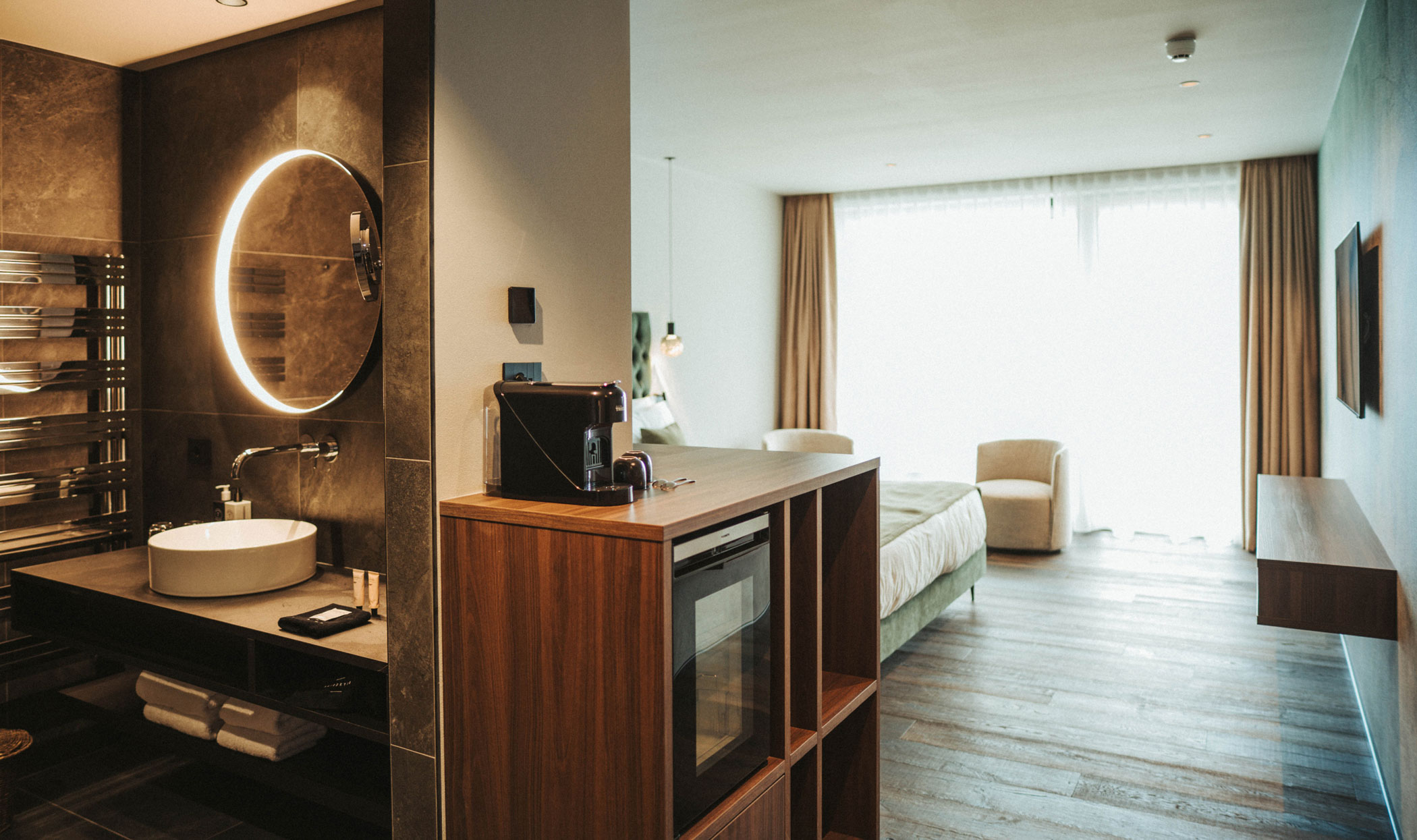 Ein Raum zum Träumen: Diese Suite besticht durch modernes Design, eine unvergleichliche Aussicht und eine perfekte Balance aus Eleganz und Gemütlichkeit. Der großzügige Schnitt schafft ein Gefühl von Leichtigkeit – ideal für Gäste, die Ästhetik und Details schätzen.