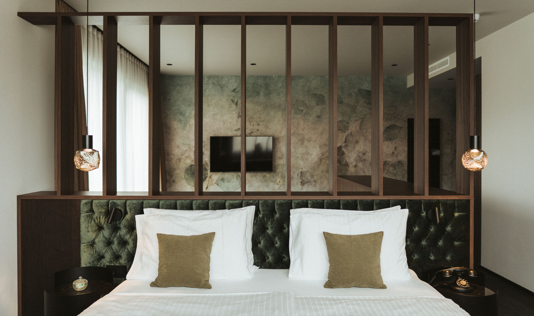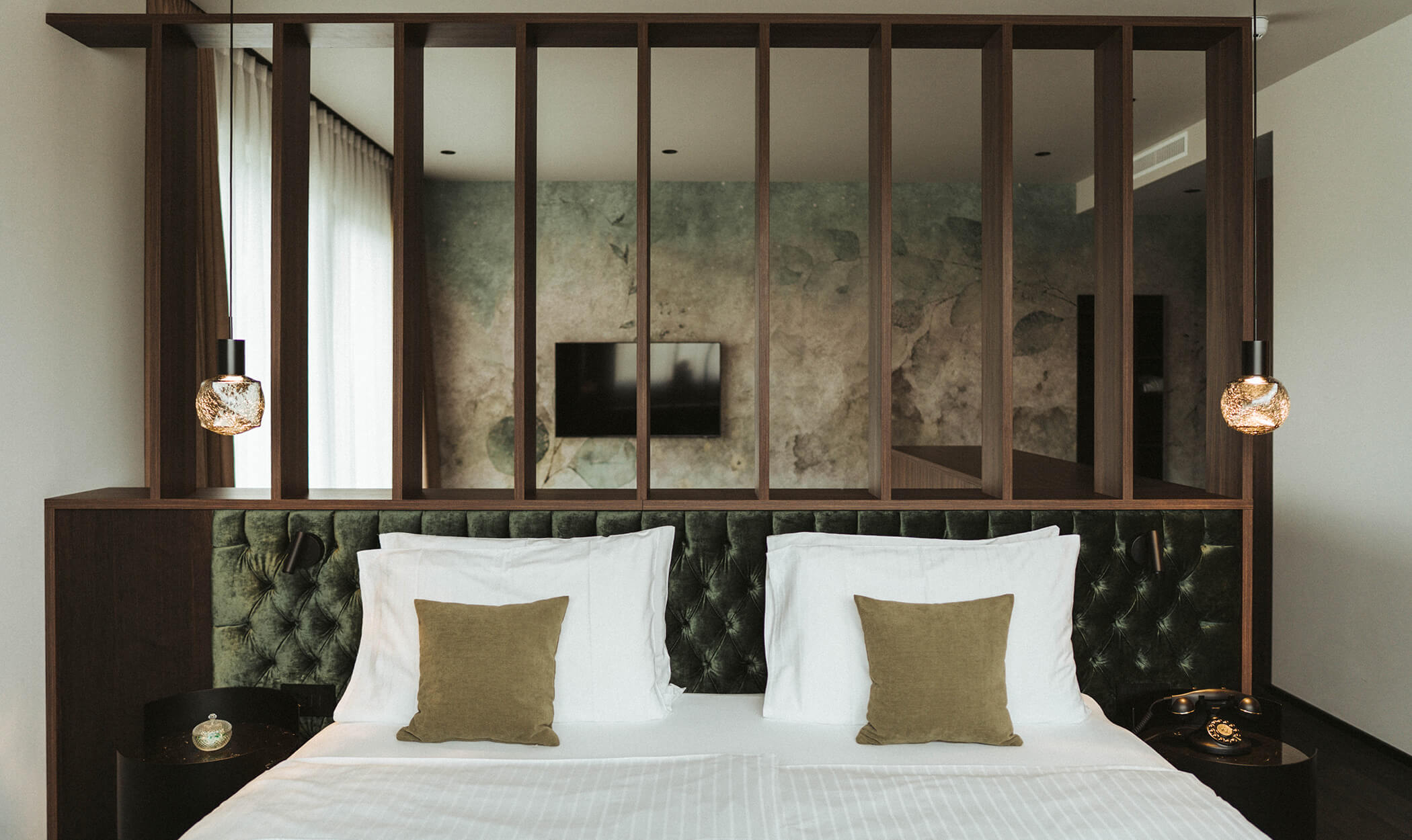 Perfekt für: Paare, die geschmackvoll eingerichtete Zimmer lieben – ob zu zweit oder zu dritt dank der ausziehbaren Schlafcouch, hier trifft Eleganz auf Behaglichkeit.